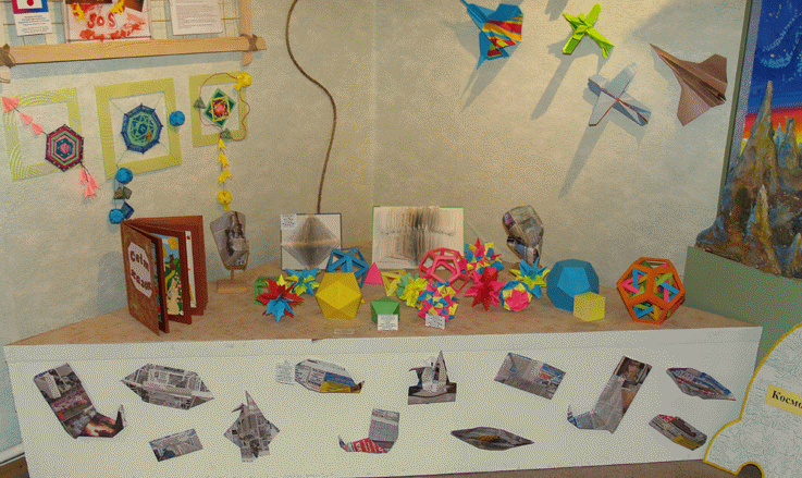 А вот ещё одна грань оригами. Даже при сознательном ограничении направления, например, моделированием математических тел или только самолётов или только писем и конвертов-оригами, птиц, насекомых, цветов, автомобилей, народной или современной одежды, да хоть разных видов сапог, простор для деятельности открывается такой, что хватает на многие годы не только одному, даже самому одарённому и трудоспособному мастеру, но и целым объединениям современников. К примеру, один из методических руководителей выставки-семинара, выпускник математического факультета Полтавского пед. института Н.Г. Ярёменко, уже многие годы сосредоточился на геометрическом моделировании и ведёт кружок по оригами соответствующего направления, а вот О.Н. Сухаревская состоит в международном объединении любителей складывания писем и конвертов (ELFA). |